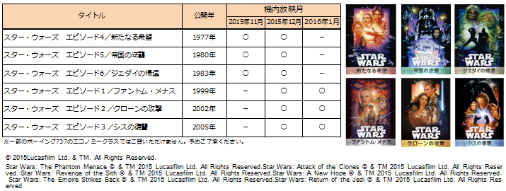 11月1日より、ANA国際線機内エンターテインメント番組において、「スター・ウォーズ」の歴代映画を上映します。