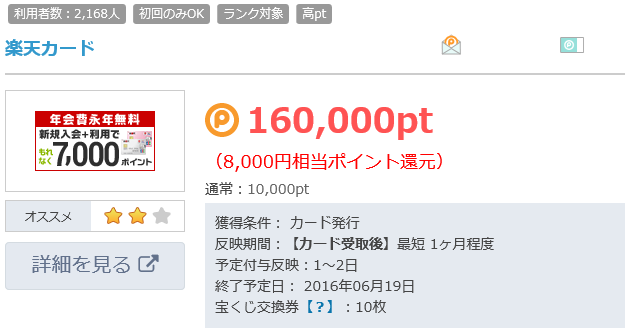 ポイントサイトにもキャンペーンがありますので、その時々によってポイントが上下しますが、ここでは6/19現在の情報として参考までに解説していきます。