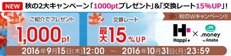 その2 ハピタスから.moneyへのポイント交換が最大15%アップ!