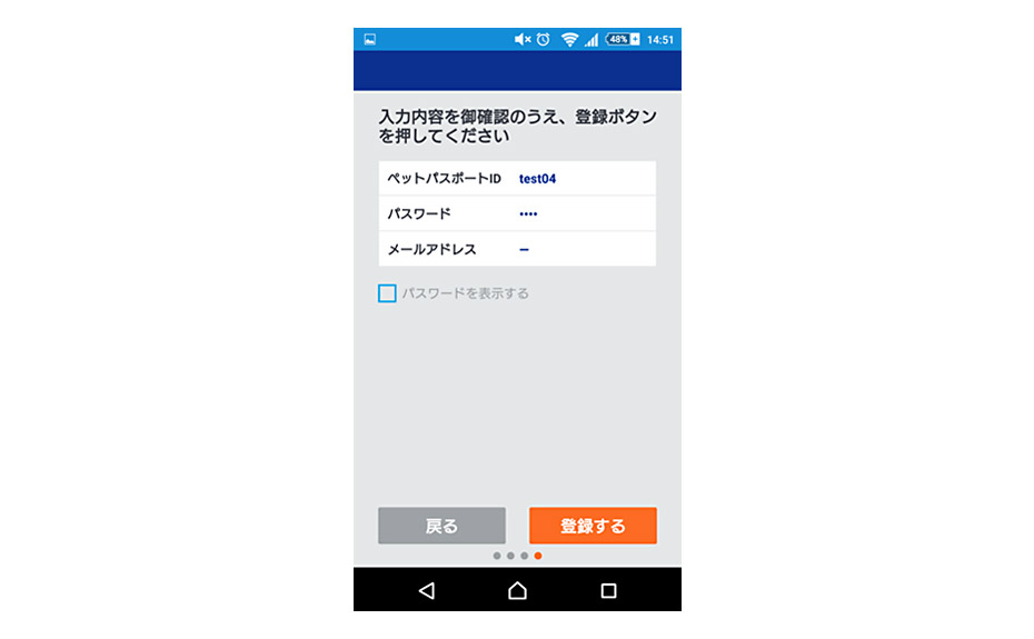 3. ペットパスポートID・パスワード・メールアドレスの登録が完了すると、登録先メールアドレスにメールが送信され、ペットパスポートIDの登録が完了。
