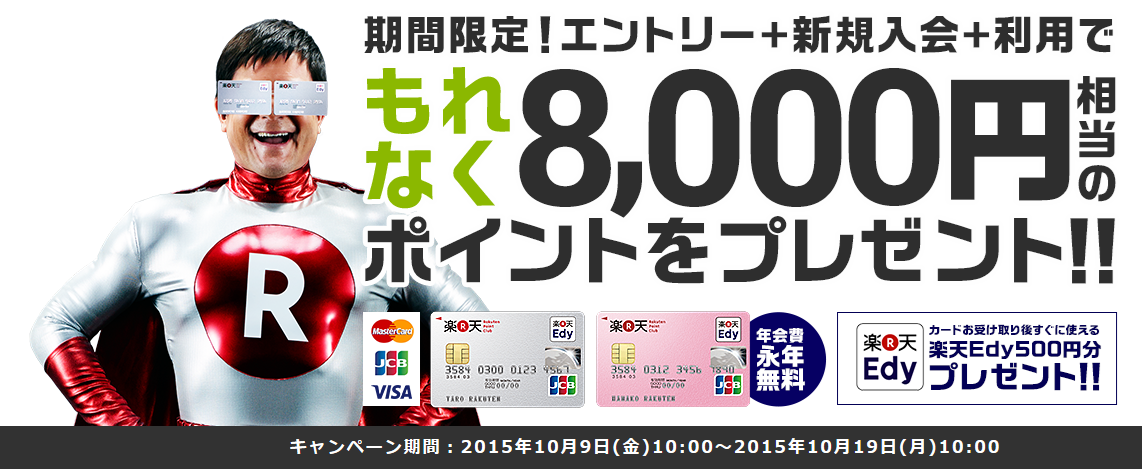 現在、楽天のカード入会キャンペーンが下記の通り期間限定で開催されています。