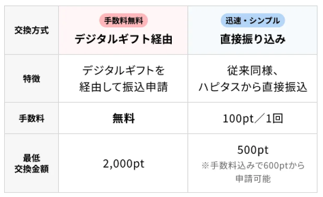 ハピタスの現金交換の選択肢拡充と一部仕様変更(手数料)!