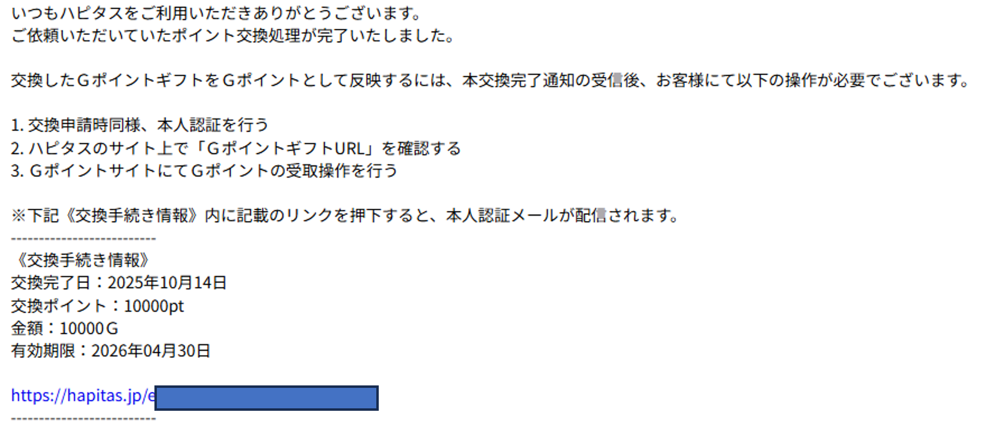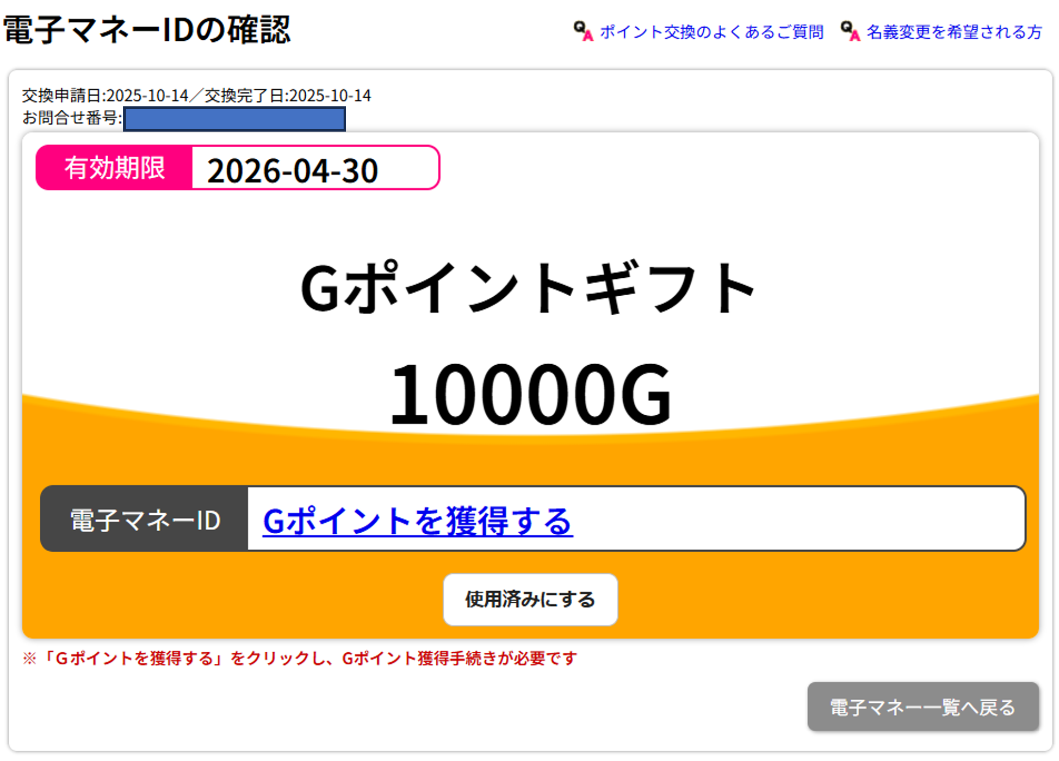 概ね当日中にGポイントのホームページで交換が確認できます。