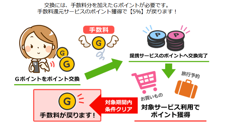 Gポイント経由で交換手数料が無料にする方法は以下の通りです。
