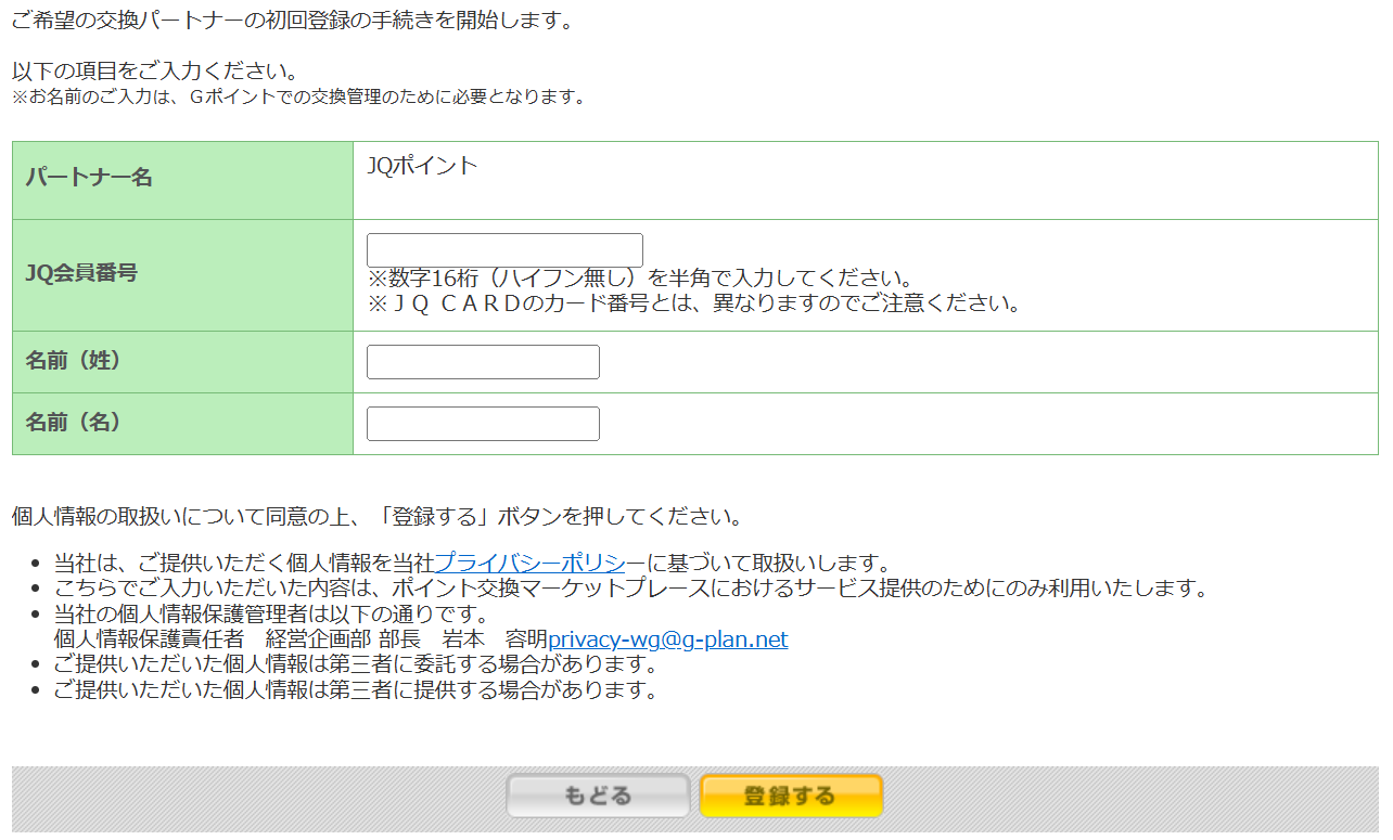 次に、「JQ会員番号」、「名前(性)」、「名前(名)」を入力します。