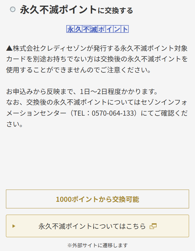 上図の「永久不滅ポイントに交換する」にチェックを入れ、画面下にある「ポイント交換申し込み」を押して進みます。