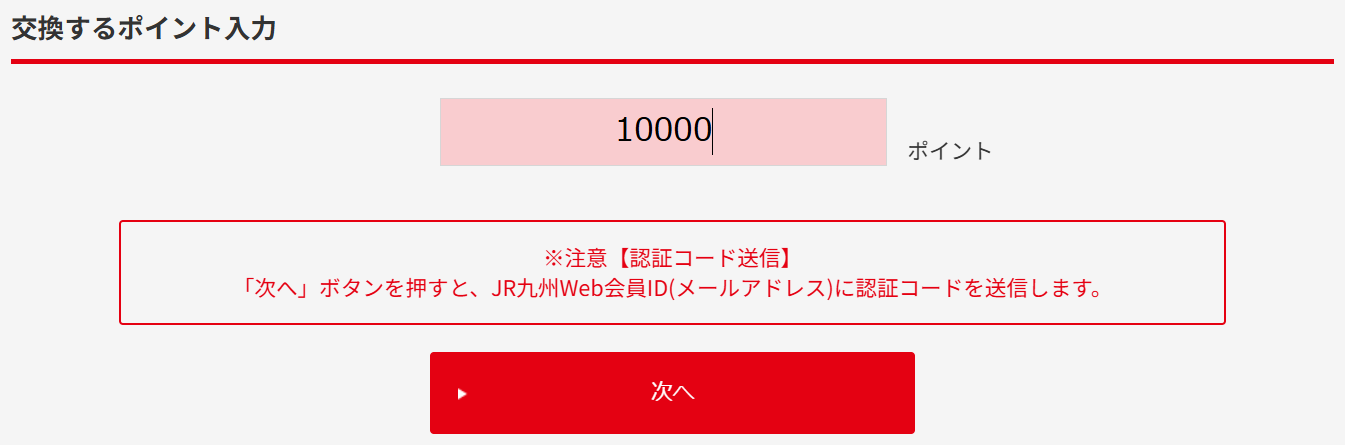 交換するポイント数を入力したら次へを押すと「認証コード」が送信されます。