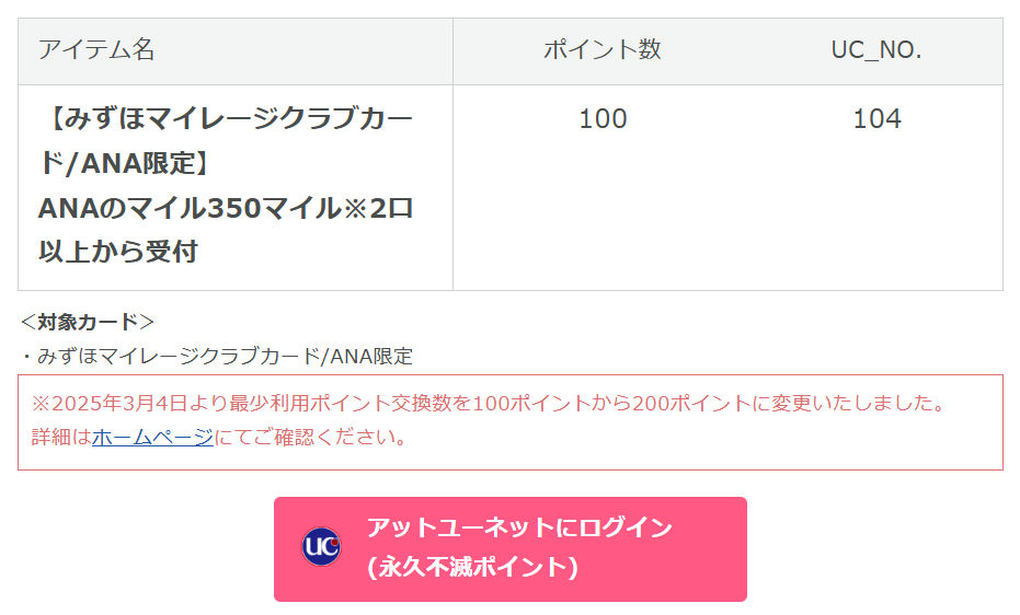 それを「みずほルート」を経由せずに一般的な交換方法で交換するとANAマイルは500マイルで交換できます。